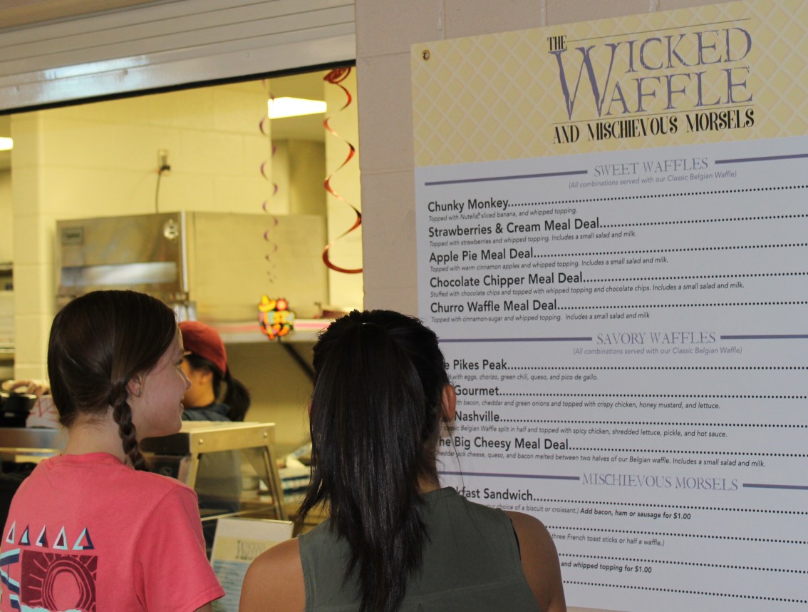 The school has five food station themes, each featuring a logo that was created by a student. The themes include “PersuAsian,” a station with an Asian food flare; “Fuego,” which often features Mexican favorites, like burritos; “The Underground,” a potato bar where students make their own potato creations; “The Twisted Fork,” an Italian-themed pasta bar and “The Wicked Waffle,” waffle bar with toppings. There’s also an “Action Station,” another made-to-order station where themes are rotated. The schools also maintain a “The Grab & Go” station as well.