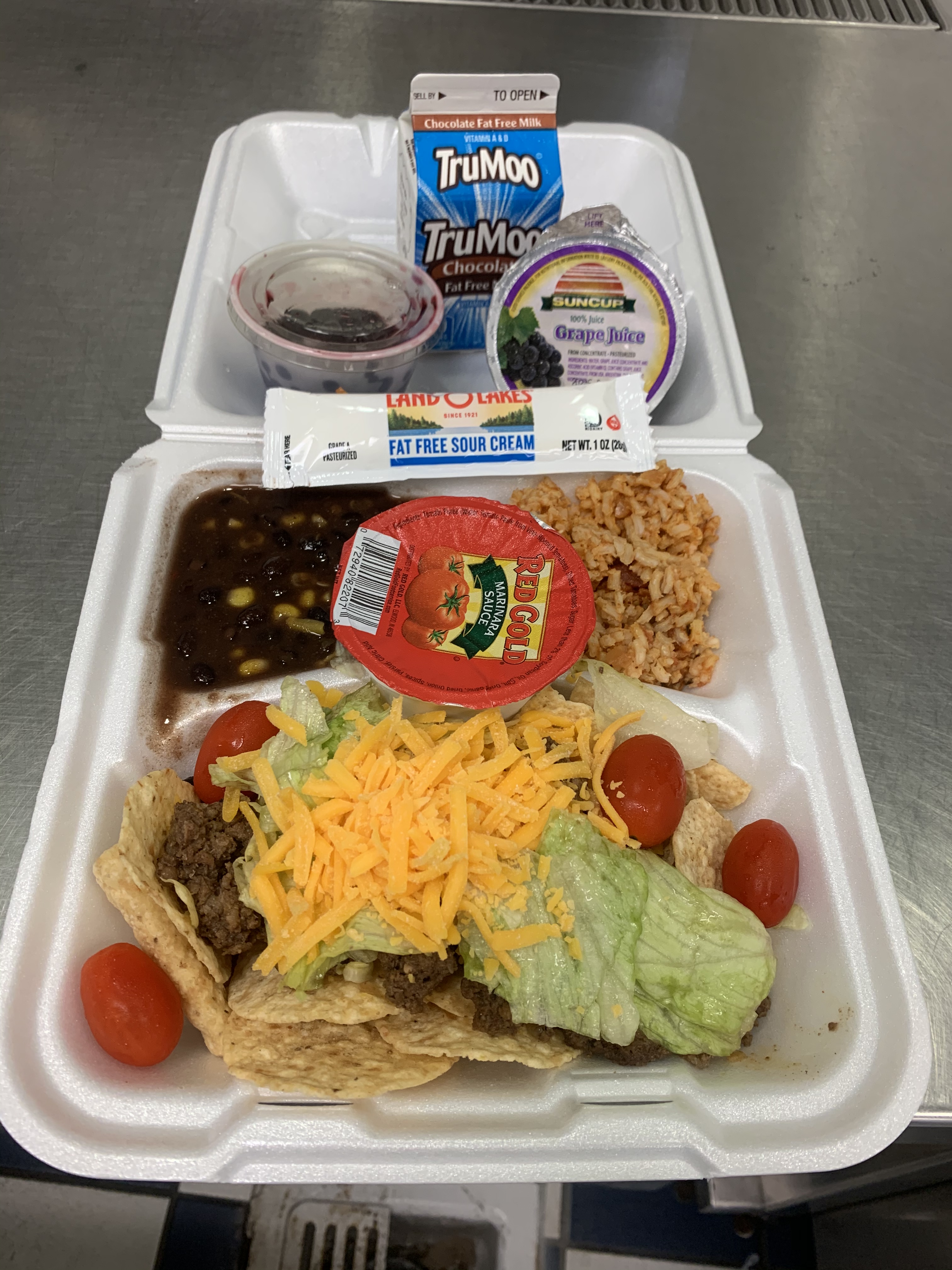 Curbside pick up has included components for a week’s worth of delicious and nutritious school meals that could be assembled by parents and students to enjoy at home. When parents picked up food up on Mondays, nutrition staff gave one hot lunch for the day and then the ingredients for meals for the rest of the week.
