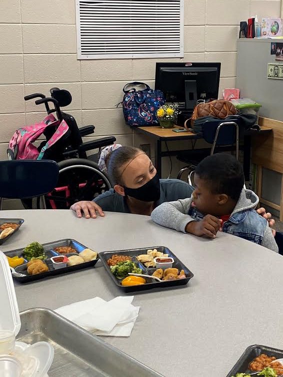 Jennifer Graham, the Southeast regional Employee of the Year, serving lunch to one of her favorite special education students.