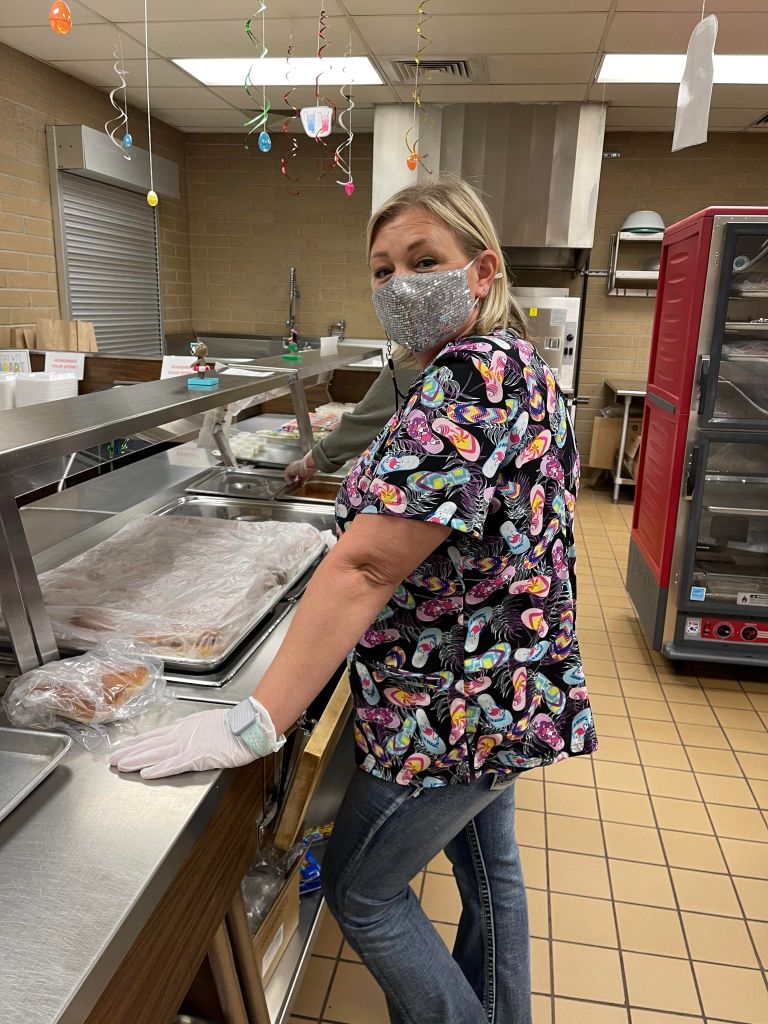 For 27 years, Root has been taking care of students’ needs, particularly those with special dietary needs or those students who are just having a bad day. Her smiling face, before mask wearing days, was a comforting welcome to students as they entered the cafeteria each day.