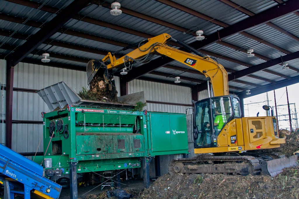 Cafeteria scraps are taken to Prince William’s Balls Ford Road recycling facility, where the county’s organic waste treatment contractor, Freestate Farms of Manassas, begins the composting process. The collected food is mixed with leaves, grass clippings and other yard waste, then shredded and placed in bays for about 15 days where it sits to decompose. It is then moved to another area of the composting facility and placed into 20-foot high piles called “windrows” for another 30 days. At that point, it is processed to a finely ground compost ready to be used in gardens and lawns.