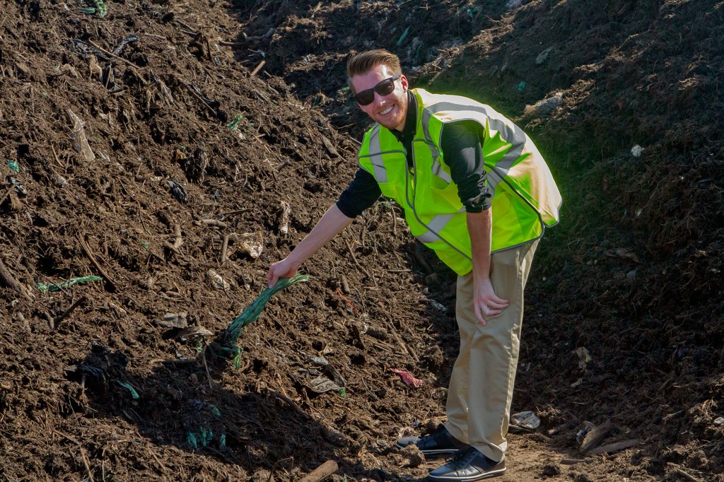 Once students do their part by clearing their lunch trays using the proper bins, the Prince William County School (PWCS) Nutrition staff takes the leftover food and any compostable packaging out to compost bins.