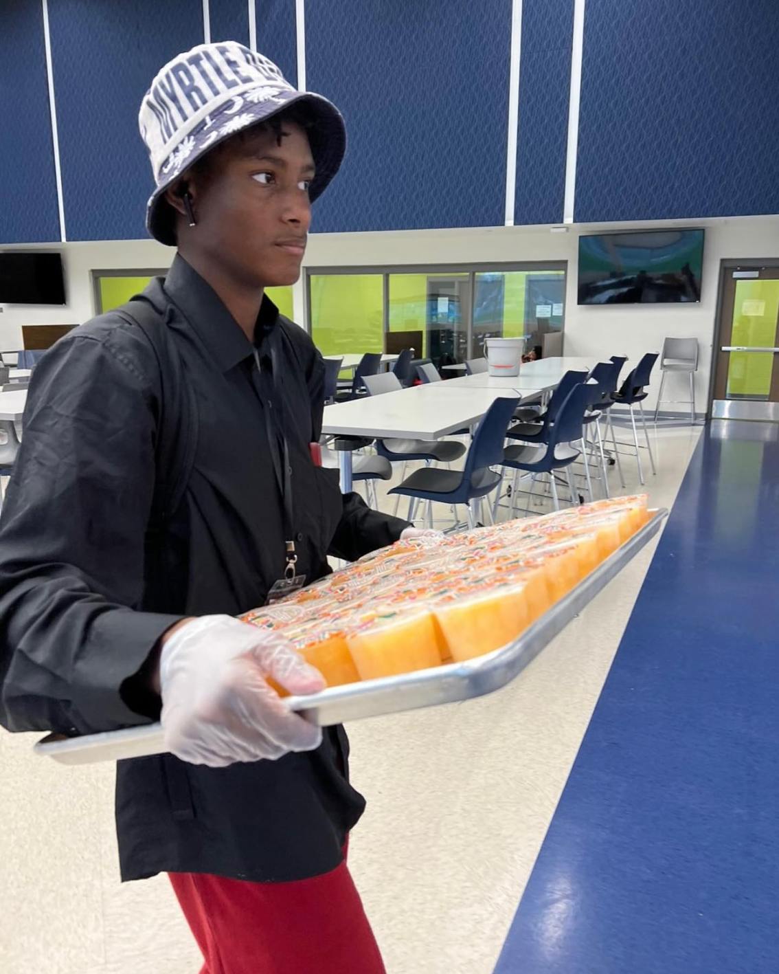 The students are initially trained by the school nutrition staff and their teacher supervises them in the cafeteria. Packard says it can be a relief for the staff to know that the student interns are handling some of the tasks often left until the end of their work day. And the students like doing it.
