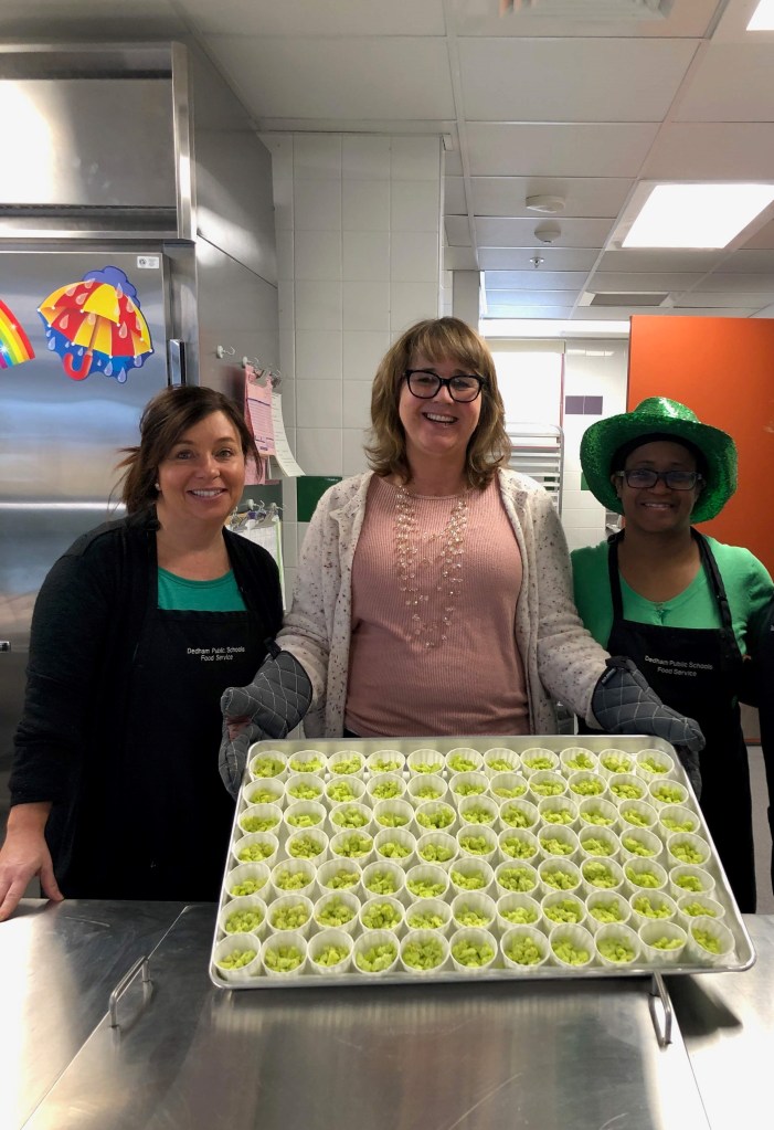 Jeanne Johnson is credited with making many positive changes to the school nutrition program in Dedham. Faced with the unique problem of providing meals for four elementary schools without kitchens or cafeterias, Johnson turned a storage room in the high school kitchen into a centralized production facility. The nutrition department is now able to provide those elementary school students with the same freshly made, high-quality meals as the middle and high school students.