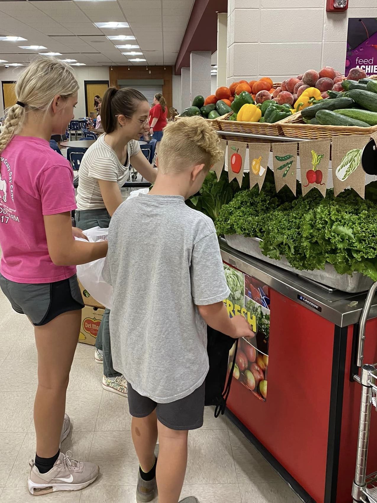 The Wamego school nutrition department is busy while students are on summer vacation, offering daily summer meals. Each time a student comes for a meal they receive a token. On Fridays, they turn in their tokens to get locally-grown produce at the cafeteria’s farm stand to bring home to their families.