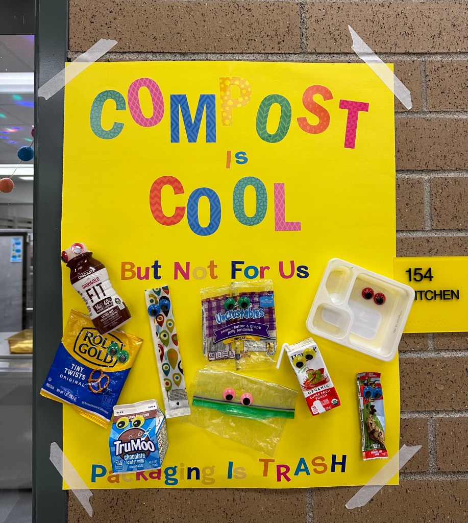 “We have student volunteers who help remind their classmates about what can be recycled and what goes in the trash. Also, the owner of the composting company has come in to speak to students about the Vermicomposting process,” said Kirsten Pfannmuller, Registered Dietitian with Bozeman School District 7.