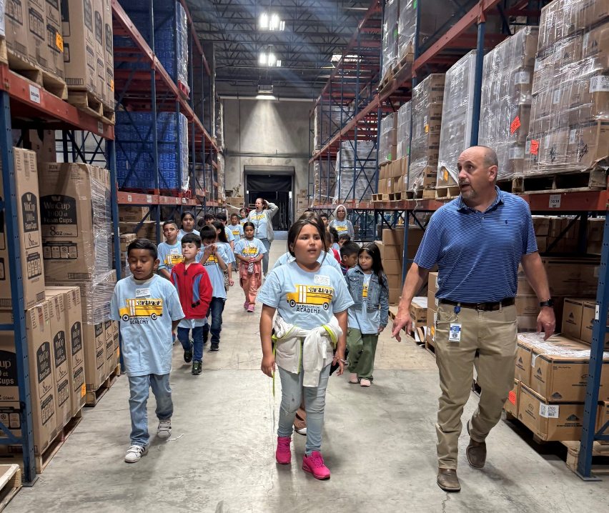 First and second graders from the Cable and Westwood Terrace elementary schools in San Antonio toured the Northside Independent School District’s food warehouse, where they experienced an interactive lesson on food systems. Staff members explained how local foods are grown, processed and go through the supply chain before being served to students.