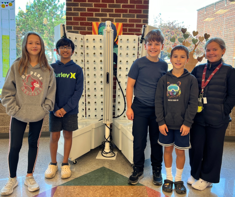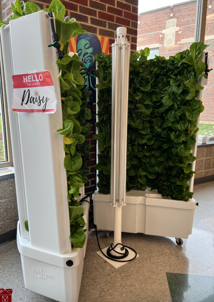 “It’s a way to educate and display the growth of lettuce,” said Brandenburg. “The towers are mobile and can easily be moved between classrooms and the cafeteria, providing a dynamic learning experience for students of all ages.”
