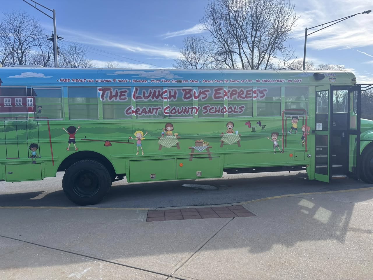 “We had conversations about how we could use the bus during the school year when I first started working for the school district and came up with the idea to create the Birthday Bus,” said Maggy Livingood, School Nutrition Director for Grant County Schools. “The bus visits a different elementary school each Thursday and those celebrating a birthday that month get to go on to the bus for about 25 minutes, enjoy their lunch and celebrate with their fellow students.”