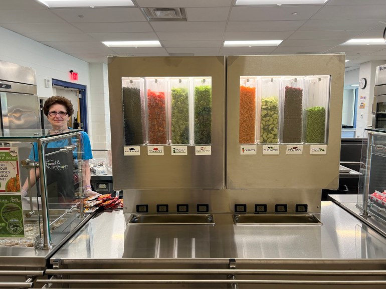 Platt serves roughly 700 meals daily. Nearly all students qualify for free meals, and Jalbert says the salad bar has been a hit across the cafeteria.