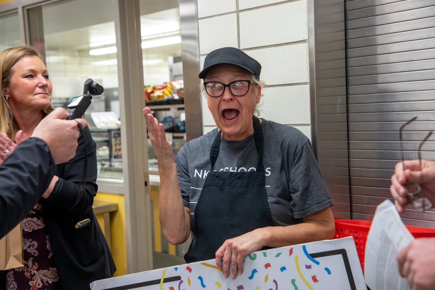 “The district does a great job recognizing staff,” said Amy Rohrs, Assistant Director of Food Service. “They show up with balloons, signs and a photographer. It really makes employees feel valued and appreciated.”